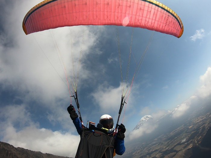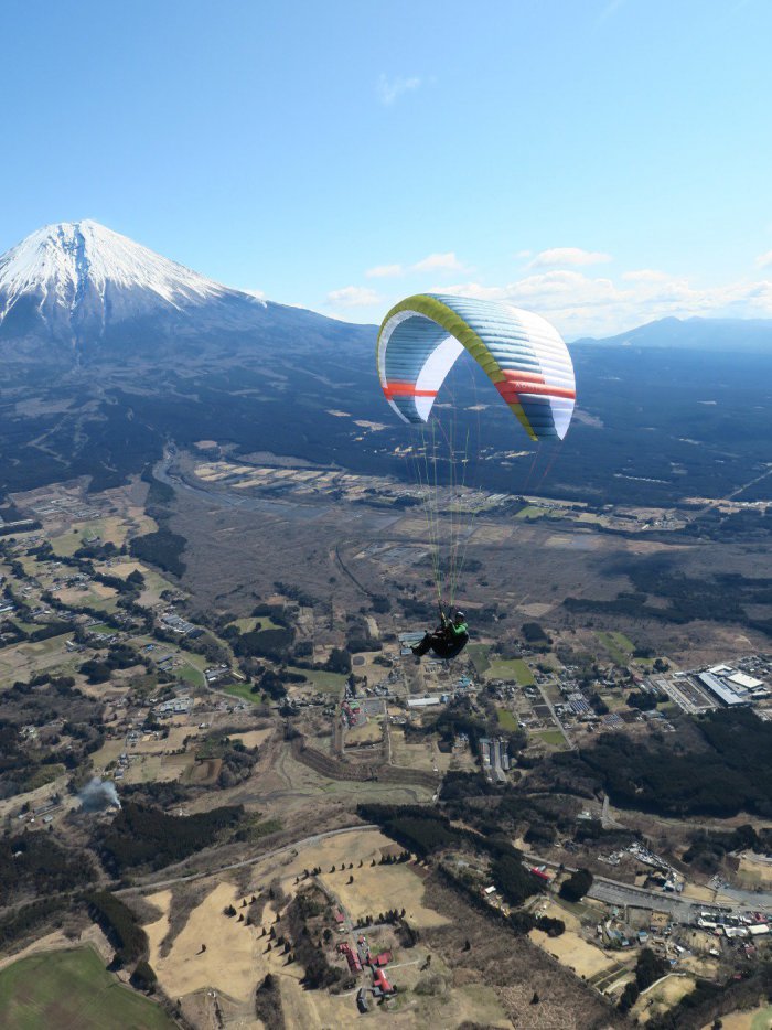 岡田、S野さんはきついサーマルブローが吹く毛無山からのフライトに成功。
