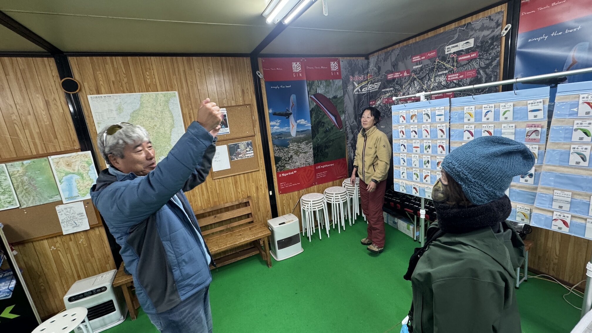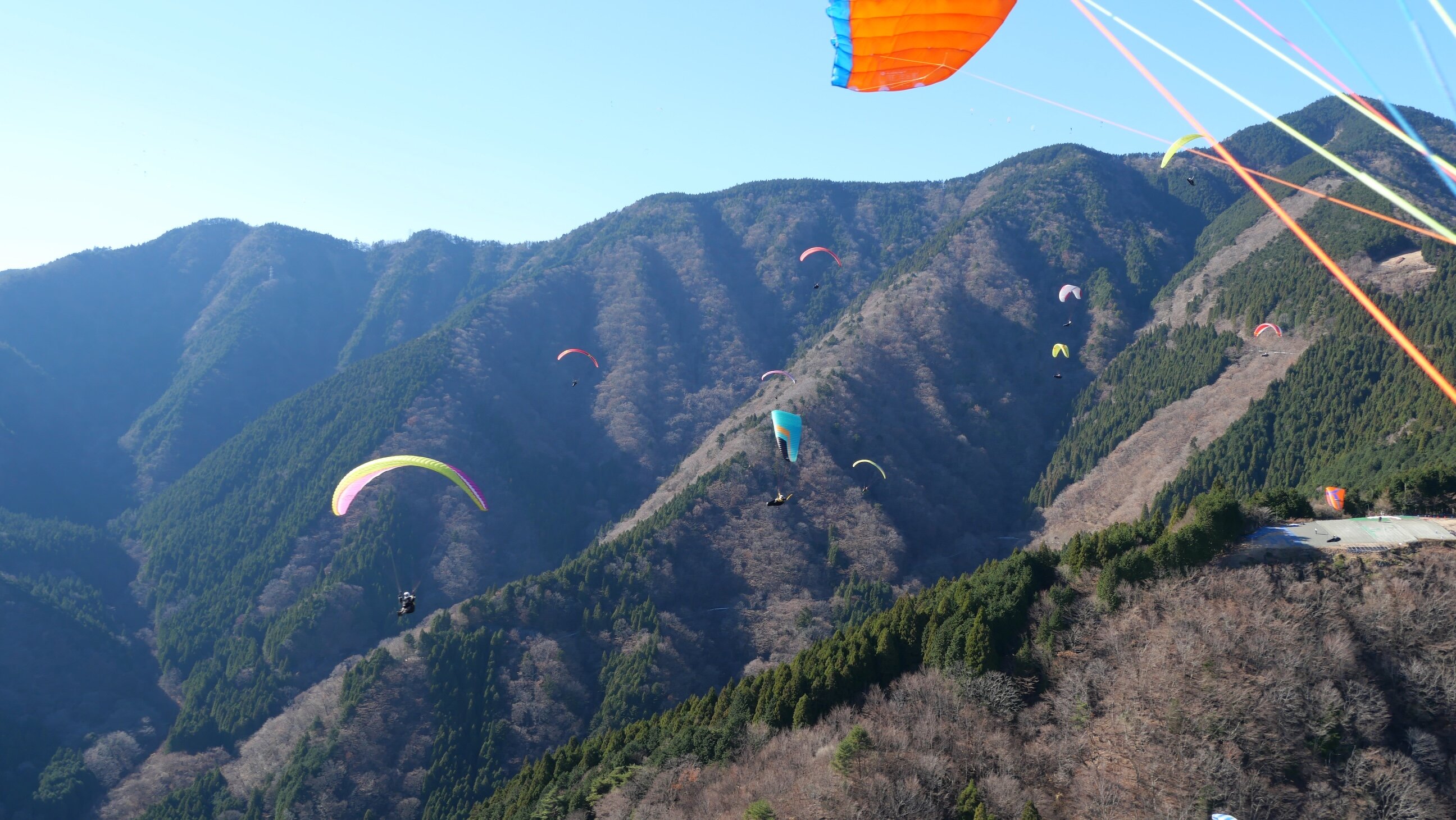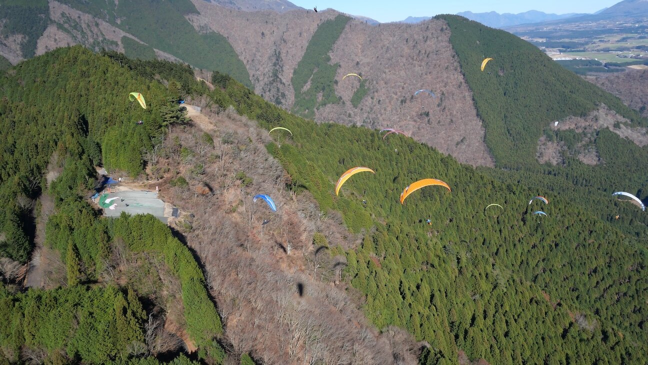 ウインドダミーも程よく上がり、お隣のJリーグはまずまずのタスク設定だったようですので、我々は選手が飛び出す前に稜線に乗ってしまう作戦で、次々にテイクオフ!