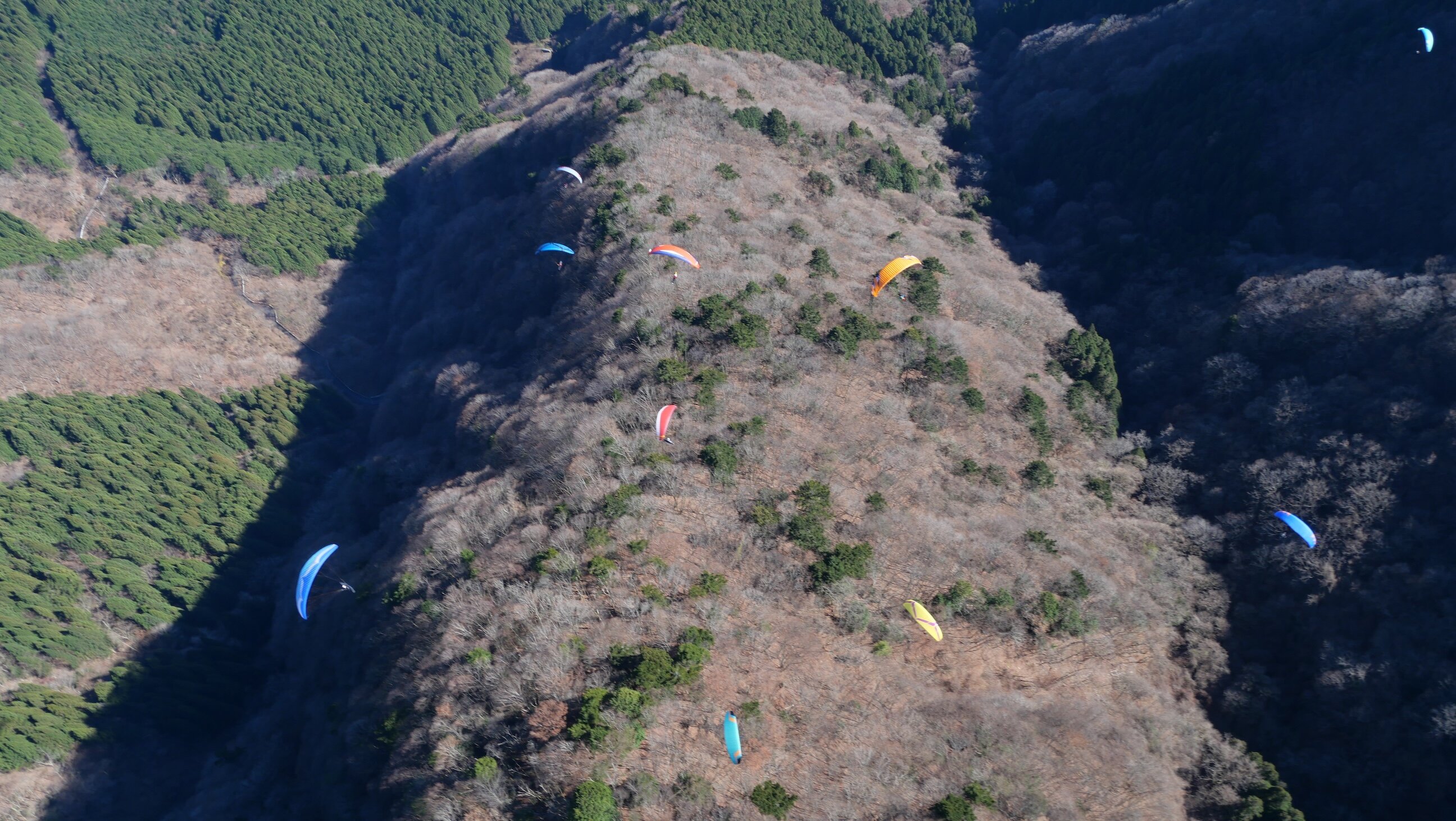 そして、ガーグルを形成しての前山トップアウトののち、2尾根を攻めたり、前山に戻ったりとグループソアリングの練習。
