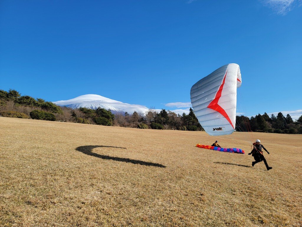 本日のパフォーマンスセンターは、土屋’s HIKE&FLYコースからスタート!初回の今日はマンツーマンでの開催となりました。朝日に赤く染まる富士山を正面に眺めながら、清々しい空気の中で最高の一本をフライトすることができました。