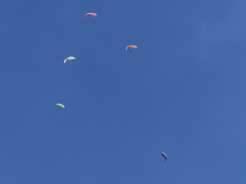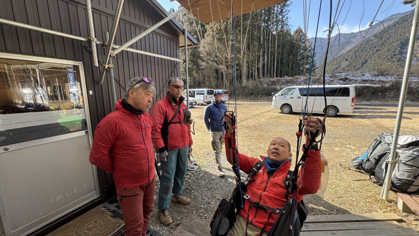 昼前には西風が強まる予報が出ていたため、全コース早めのスケジュールで動き出します。8時集合のステップアップコースは、まず1本集中しての基礎練習を実施。その後はソアリングの実践レクチャーへと移り、効率的な高度獲得を学びました。パフォーマンスコースは、前山でのグループソアリングに挑戦!トップアウトから沖出しを繰り返し、仲間と一緒に飛ぶことの奥深さや楽しさを共有しました。特に無線を交信しながら、リアルタイムで情報をやり取りして組むソアリングは、チームとしての連帯感も高まる良い時間となりましたね。